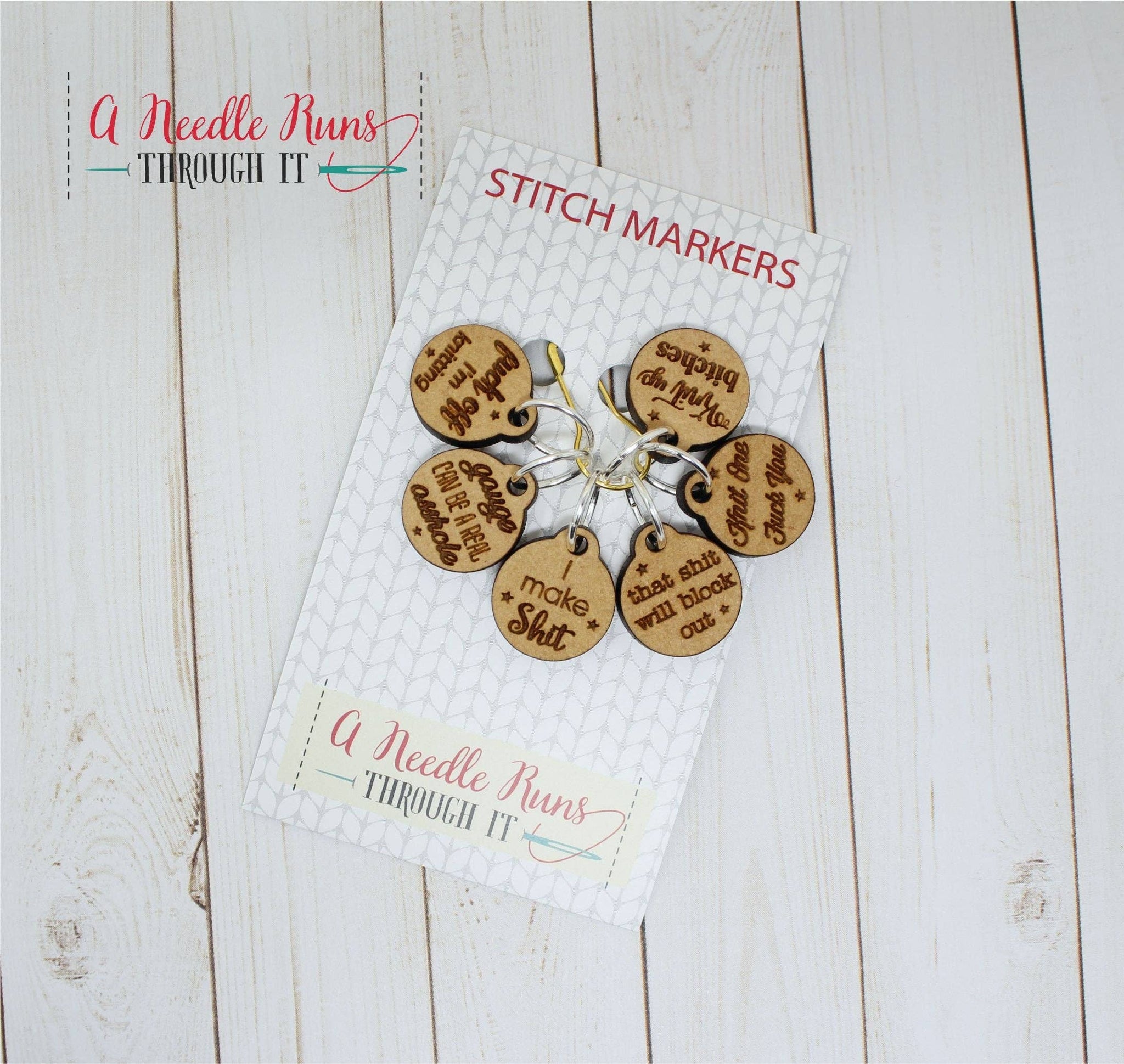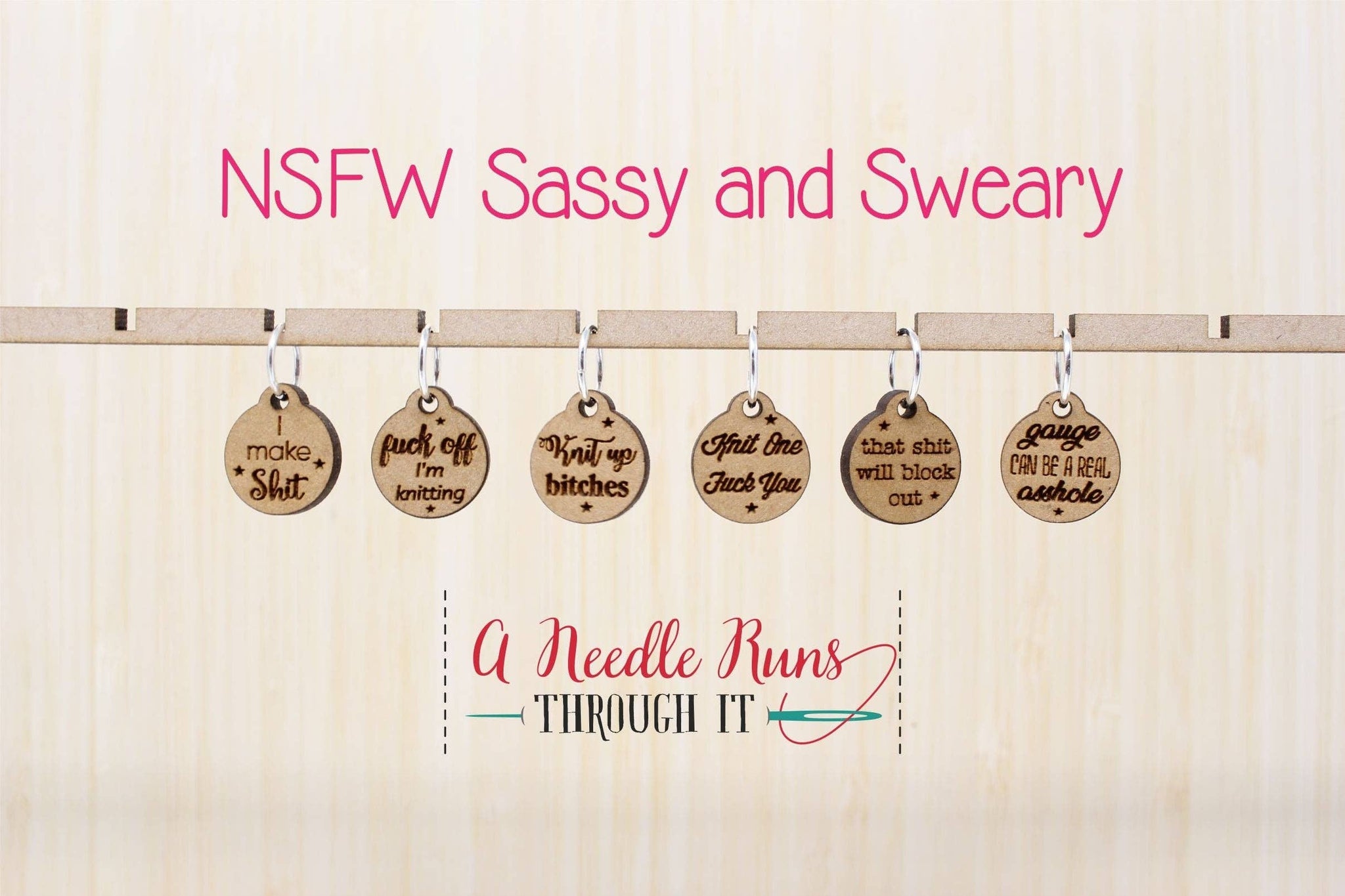 Get your sass on with these naughty NSFW stitch markers! Set of 6 wood markers. These charms and markers are lightweight, easy to use, and won't snag your knitting.