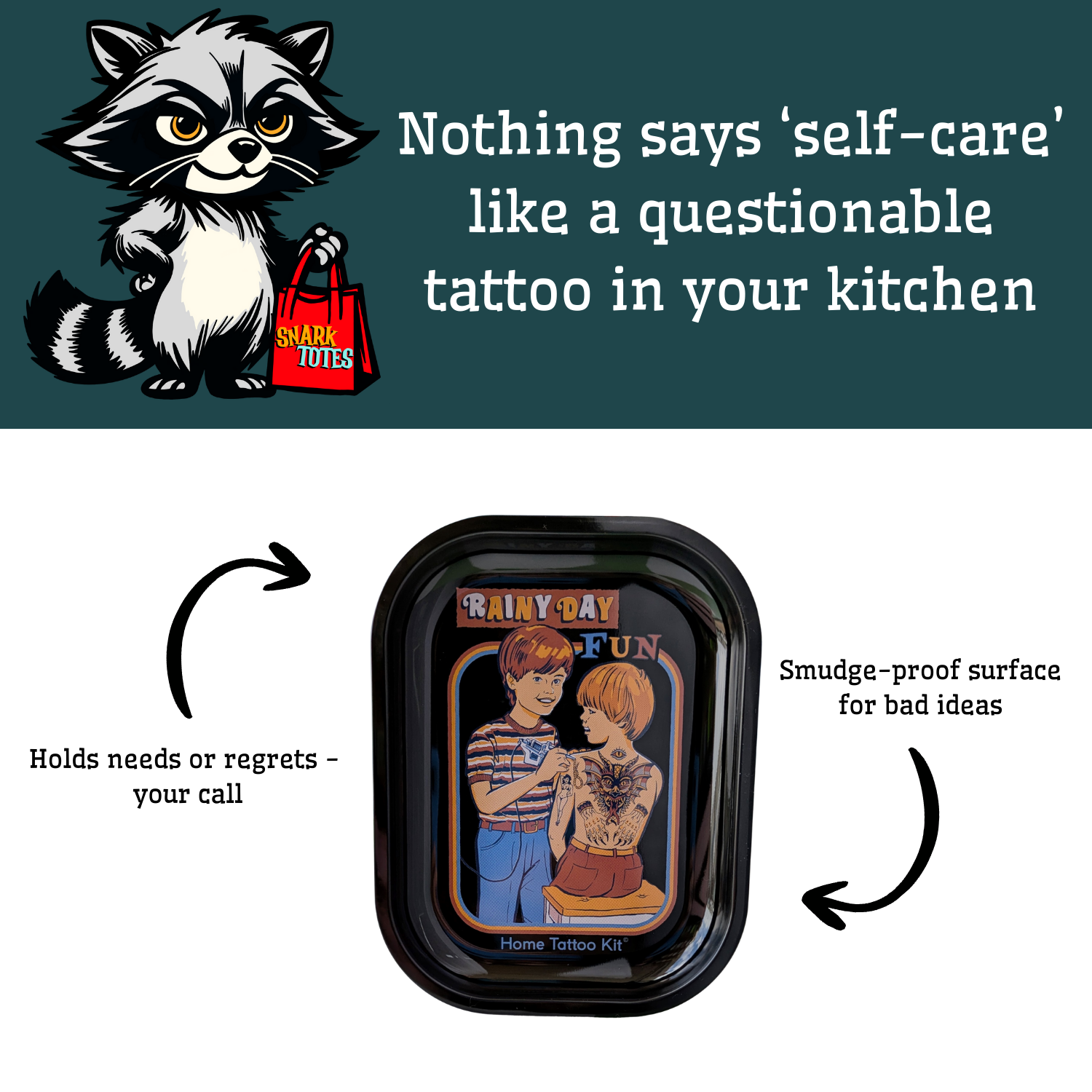 💉🎨 When arts and crafts meet questionable judgment. Forget finger painting—these kids are inking permanent memories one homemade tattoo at a time. This tray is a tribute to rainy day activities that definitely didn’t come from a parenting blog. Ideal for holding your stitch markers, ink caps, cookies, or life choices.